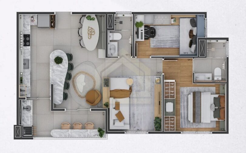 O modelo do Apartamento pode ser alterado para 2 Dormitórios sendo 1 Suíte e Sala Estendida.